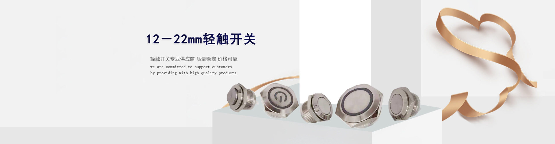 公司主導產品有:安裝直徑(jìng)6mm,8mm,10mm,12mm,16mm,19mm,22mm,25mm,28mm,30mm,40mm,係列按鈕開關和指示燈。帶燈發光種類有:環形發光(guāng),單點發光,電源符號發光,環形加電源(yuán)符(fú)號發光,其它定製發光等,開啟類型有:自鎖式(shì),自複式。防水等級可(kě)高可達IP67級(jí)。防(fáng)暴性(xìng)能可高達IK10級別。機(jī)械壽命高達100萬次。為客戶提供一個整體的開關解(jiě)決方案。